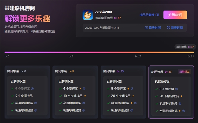 值得一提的是,房间升级卡只需房主一人购买,即可全员共享房间权益,为多人组队提供了极具性价比的解决方案。